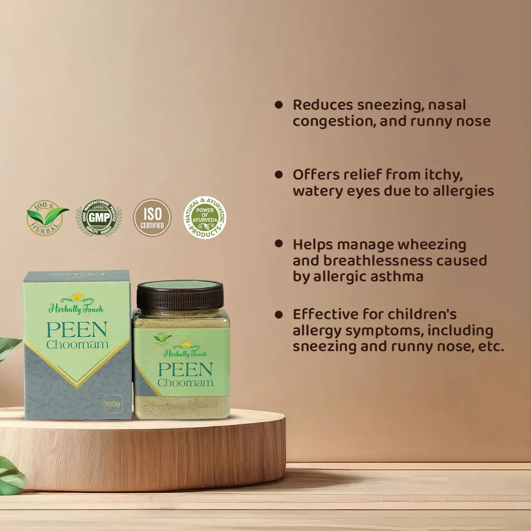 Peen Churnam is a 100% herbal remedy formulated to effectively alleviate allergy symptoms and related conditions. It is an Ayurvedic solution made from natural ingredients, ensuring safe and lasting relief.